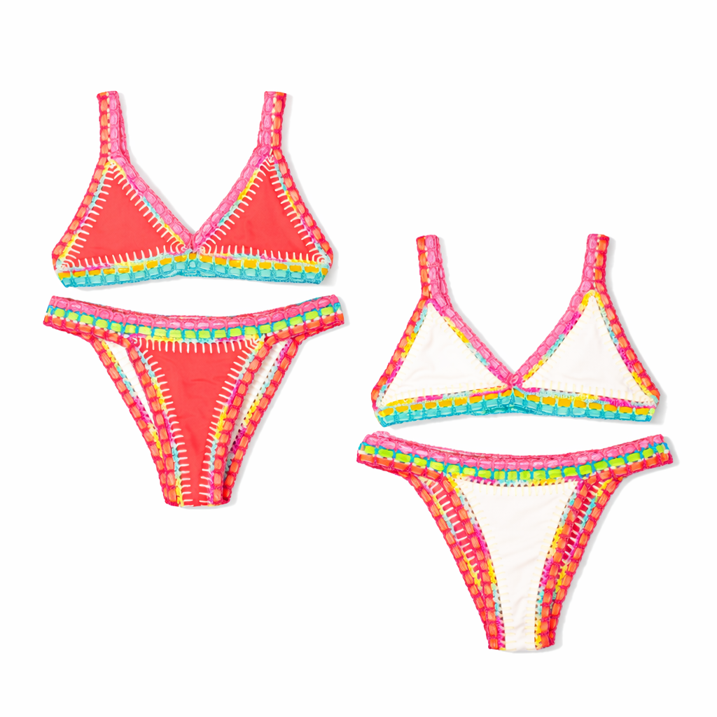 - Es un bikini reversible, la misma pieza puede usarse de las dos formas que se muestra en las fotos.