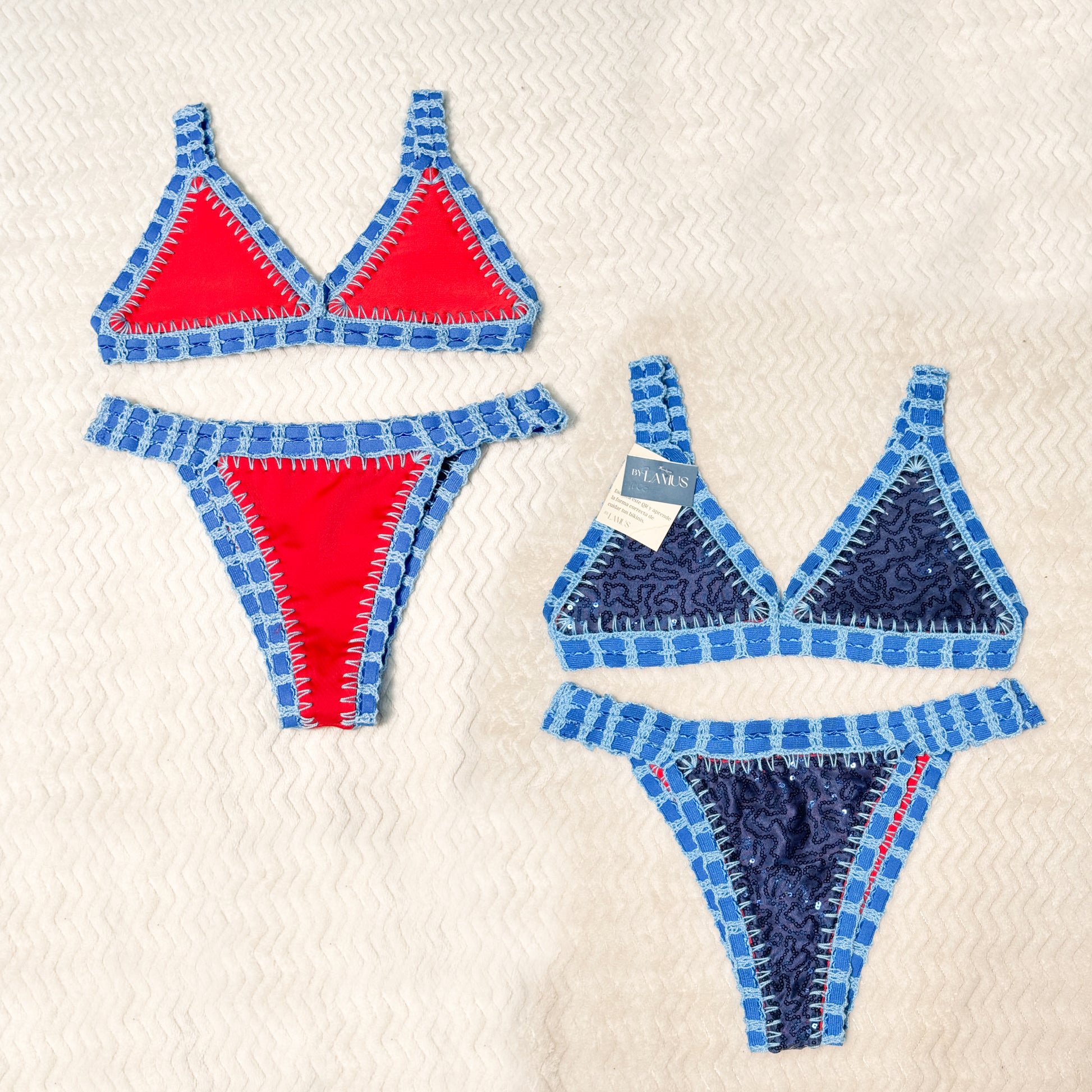 - Es un bikini reversible, la misma pieza puede usarse de las dos formas que se muestra en las fotos.