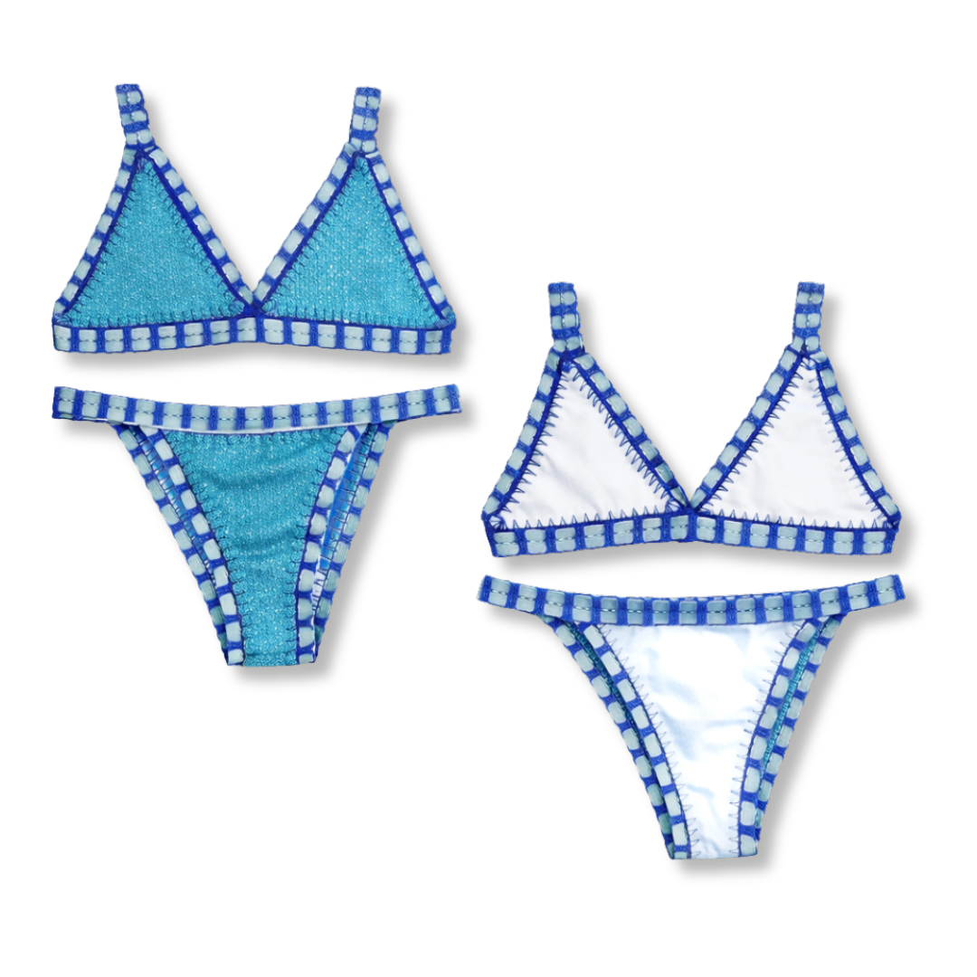 - Es un bikini reversible, la misma pieza puede usarse de las dos formas que se muestra en las fotos.