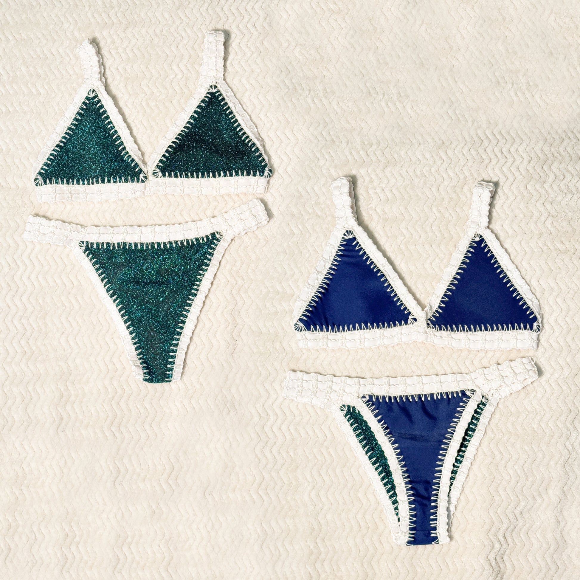 - Es un bikini reversible, la misma pieza puede usarse de las dos formas que se muestra en las fotos.