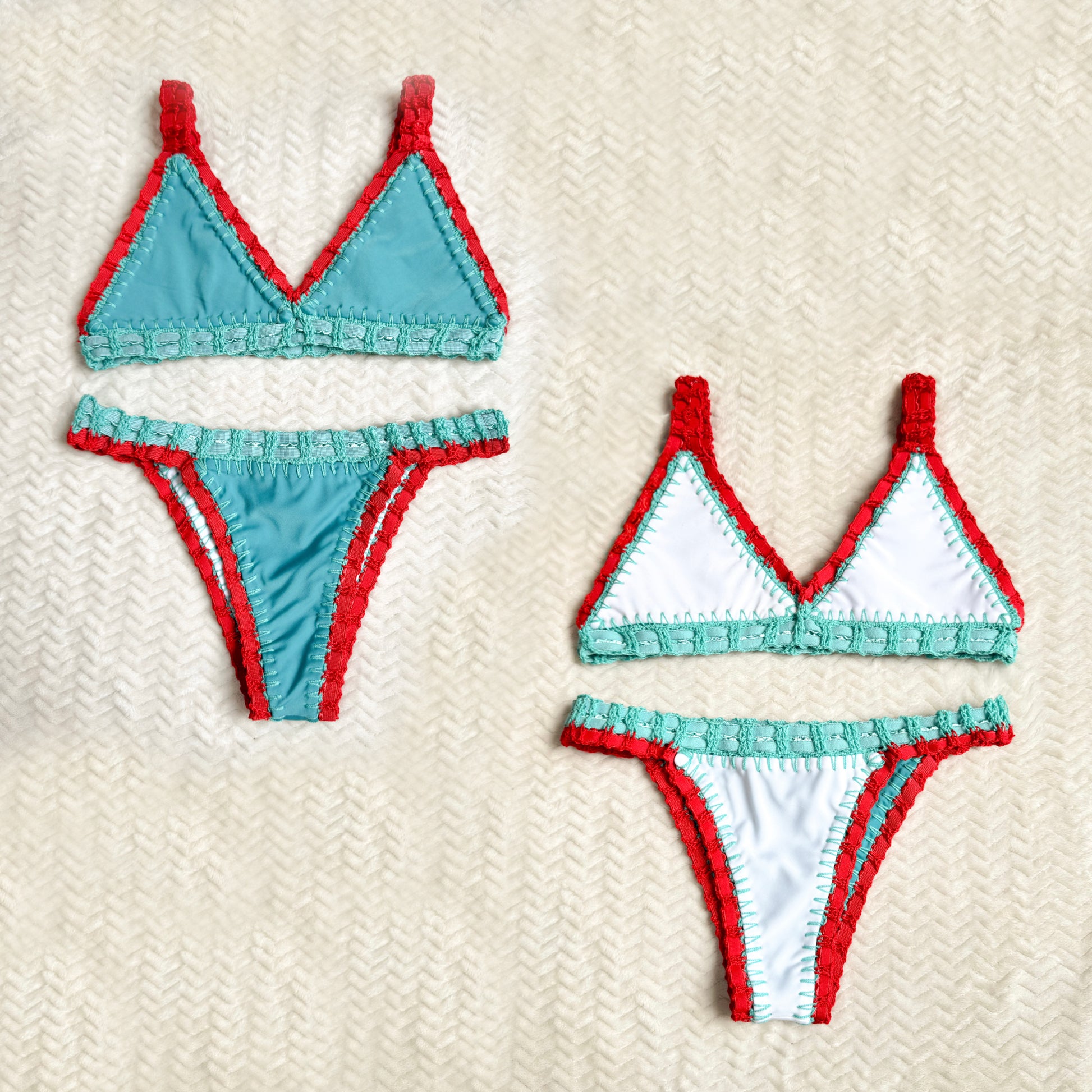- Es un bikini reversible, la misma pieza puede usarse de las dos formas que se muestra en las fotos.