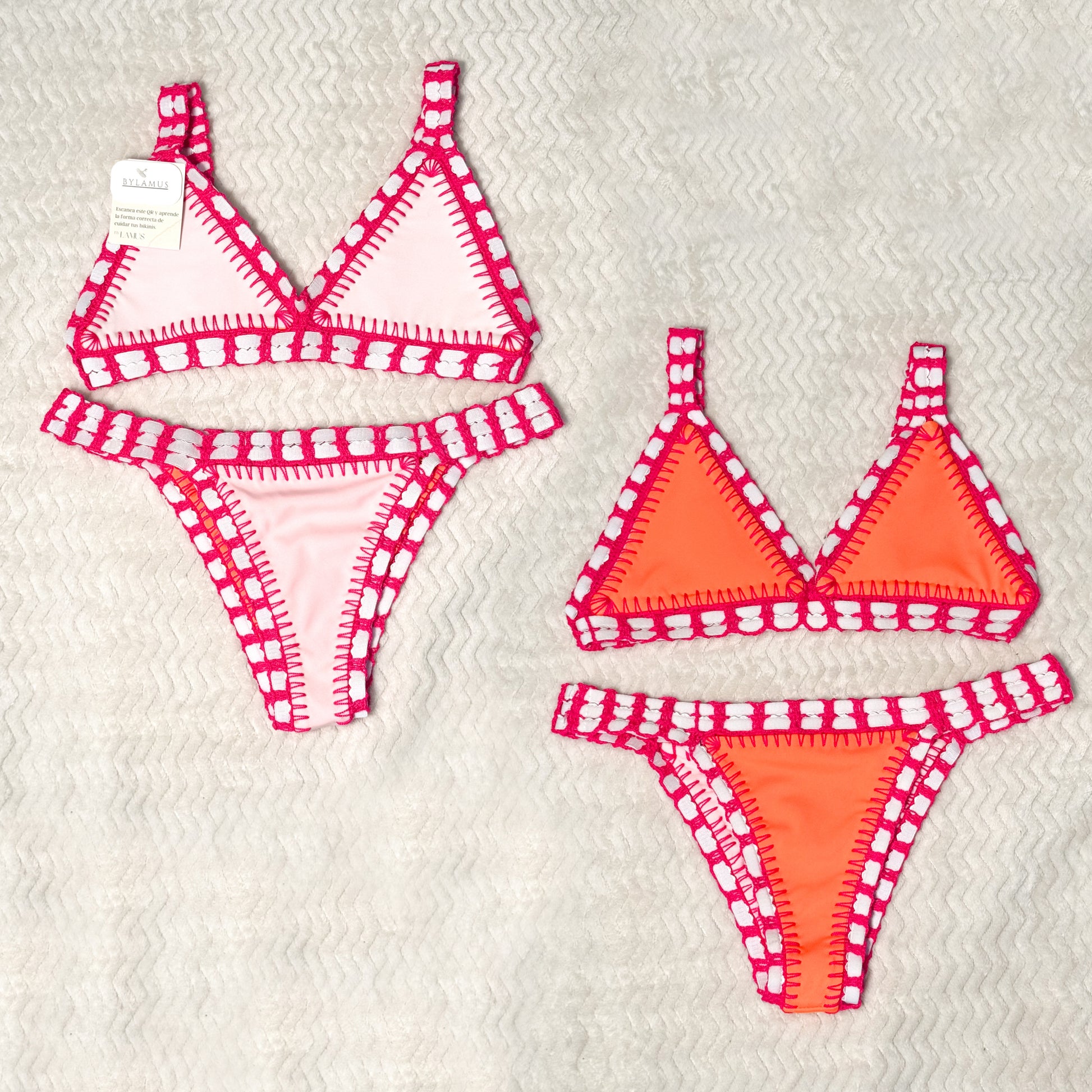 - Es un bikini reversible, la misma pieza puede usarse de las dos formas que se muestra en las fotos.